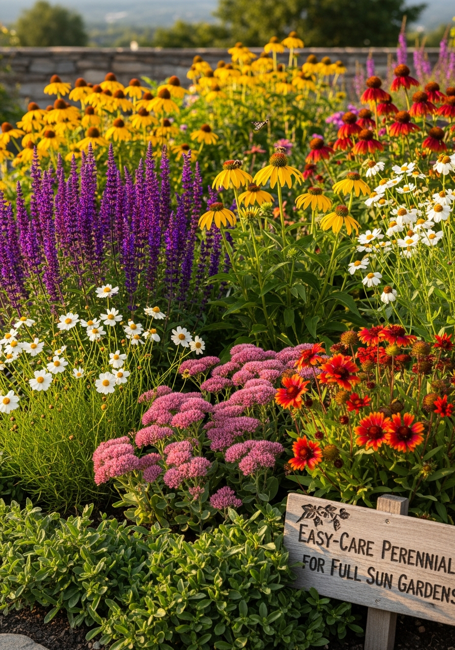 If your garden gets 6+ hours of direct sunlight per day, these easy-care perennials will give you reliable color and structure year after year with minimal upkeep.