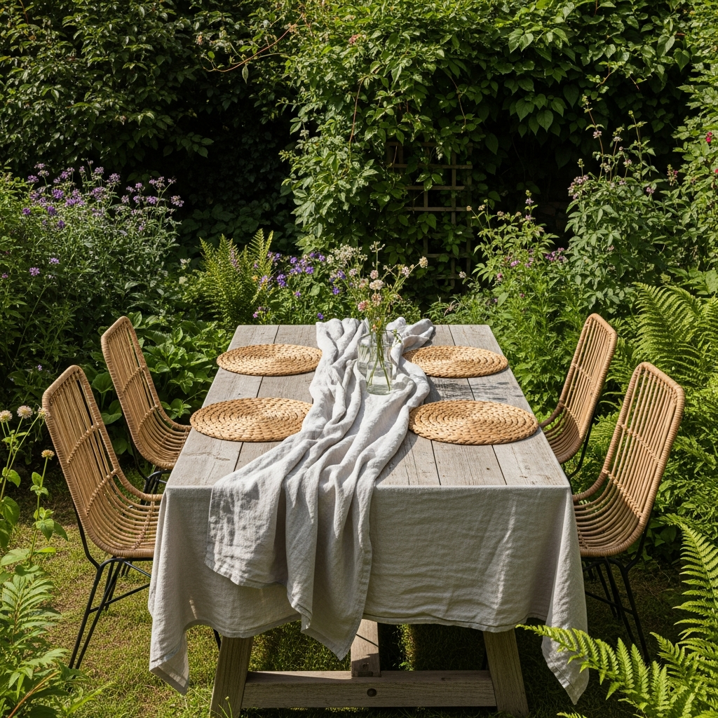 Start with natural materials that blend effortlessly with the garden surroundings. Rustic, soft, and earthy textures make the space feel more inviting.