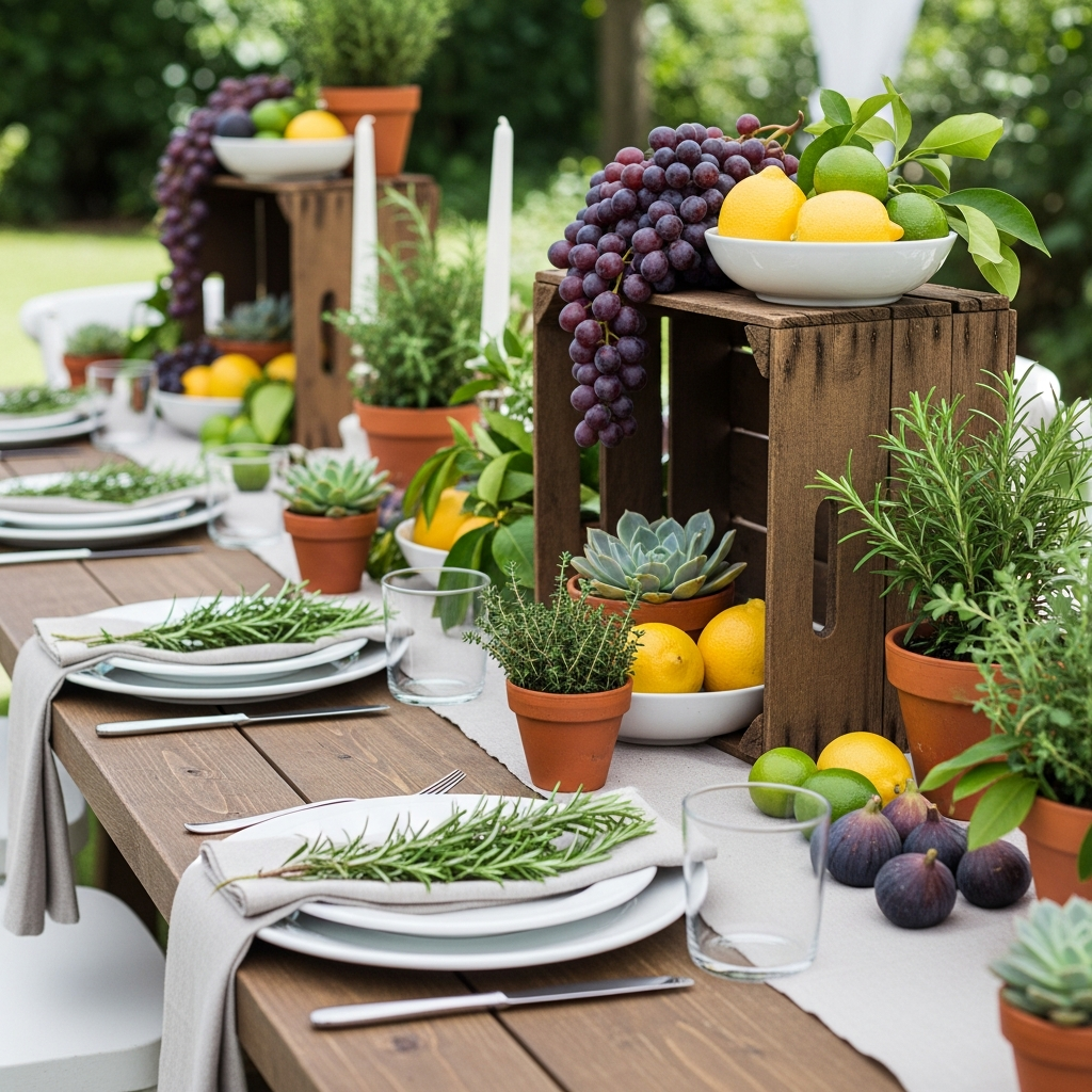 • Fruits like lemons or grapes as decor accents