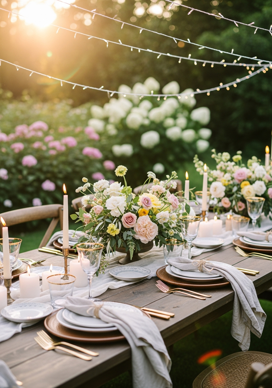 Creating a stunning outdoor garden party table setting doesn’t require extravagant décor—just a thoughtful mix of natural textures, fresh flowers, soft lighting, and personal touches. Whether you’re planning a casual brunch or a dreamy evening dinner, these ideas will help you design a warm and stylish garden tablescape that your guests will admire.