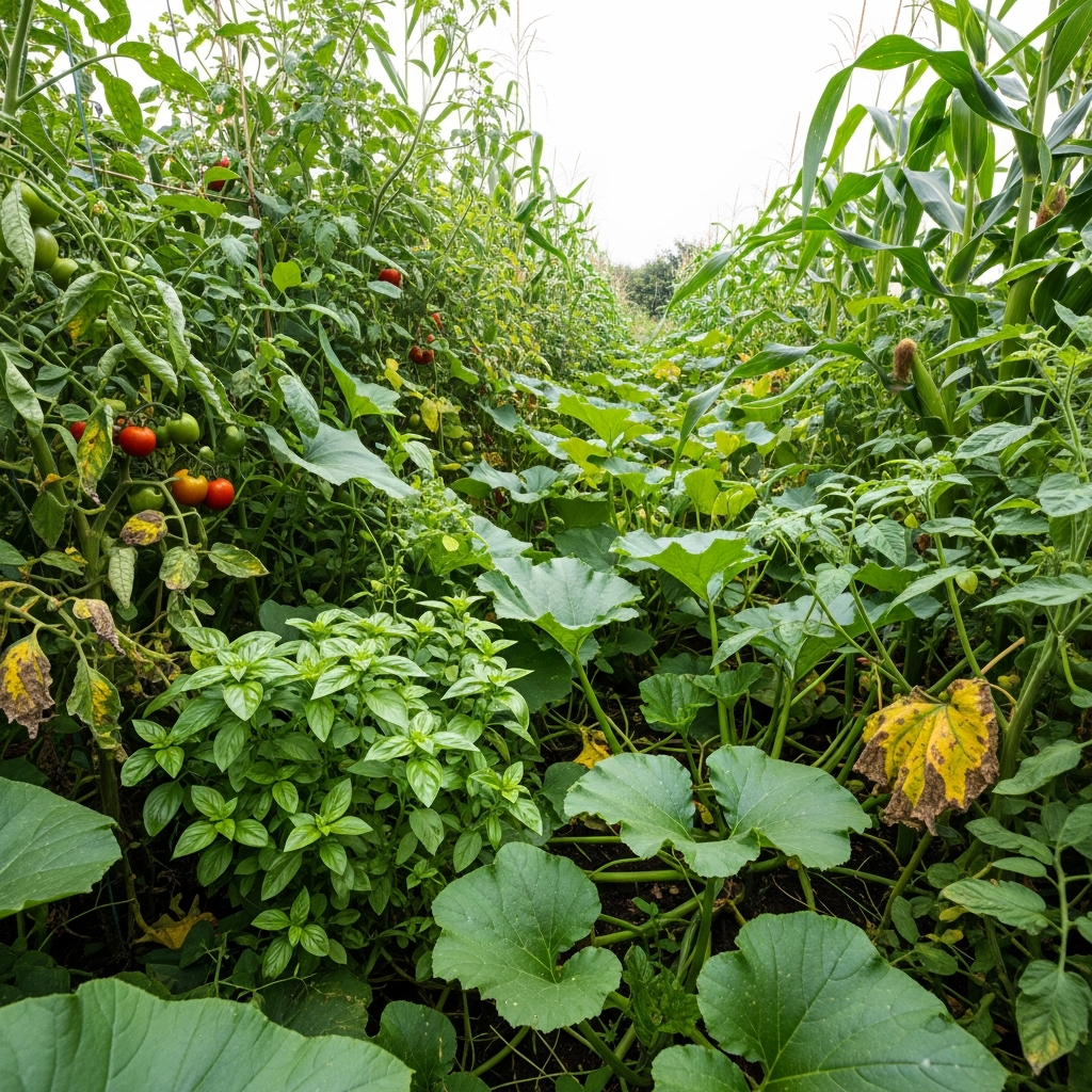 • Mixed companion planting: Mimics natural plant communities
