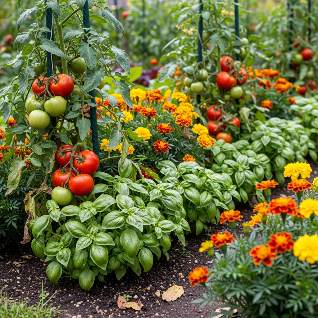 • Tomatoes, basil, marigolds